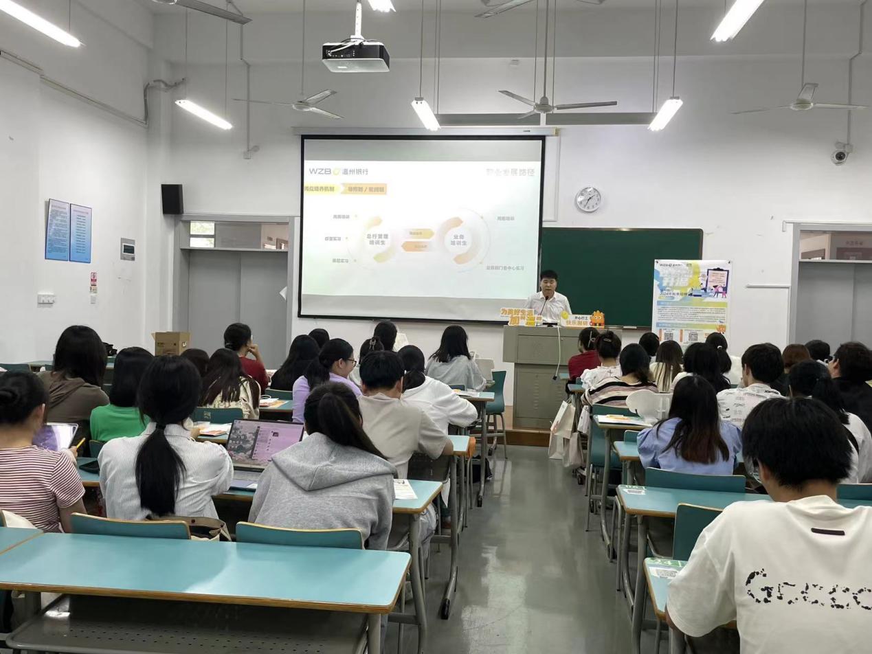 会上,吴秀丽经理讲解了温州银行的业务培训生需求,说明了公司的岗位考核要求、学历要求和个人素质要求。随后,吴经理介绍了同学们最为关心的问题——薪酬及福利待遇,围绕等级工资和绩效奖金,标准工资和经营效益奖金,福利待遇包括五险二金、节日福利、员工疗休养、带薪休假等内容进行了详细说明。在答疑互动环节,吴经理就管培生、实习生在温州银行的区别进行了细致介绍,也向同学们分享了有助于应聘岗位的一些资格证,如银行就业资格证、基金从业资格证、会计师证等。针对同学们关心的简历、试用期、实习生工作内容等问题,吴经理也给予同学们耐心解答与回应。