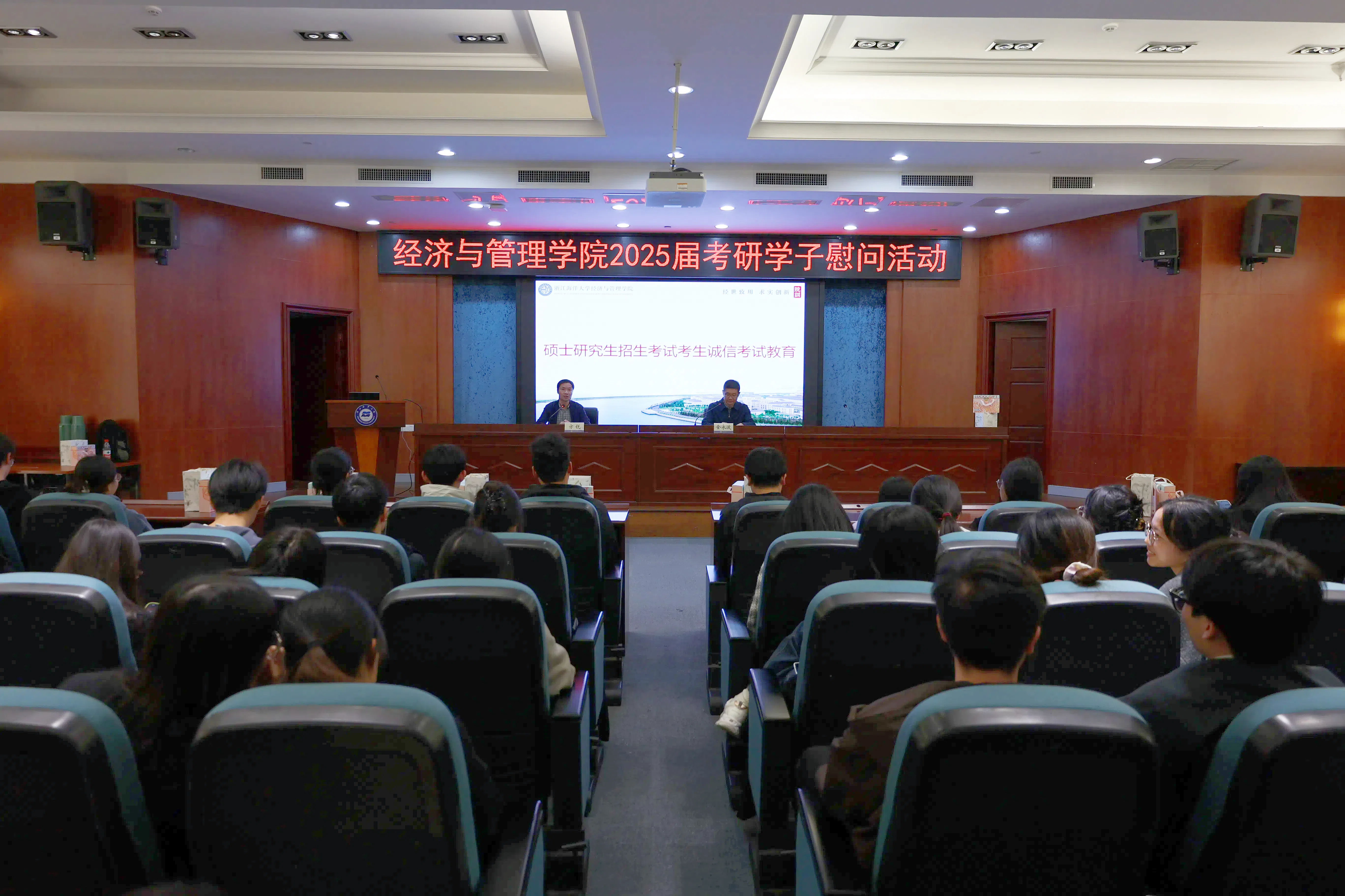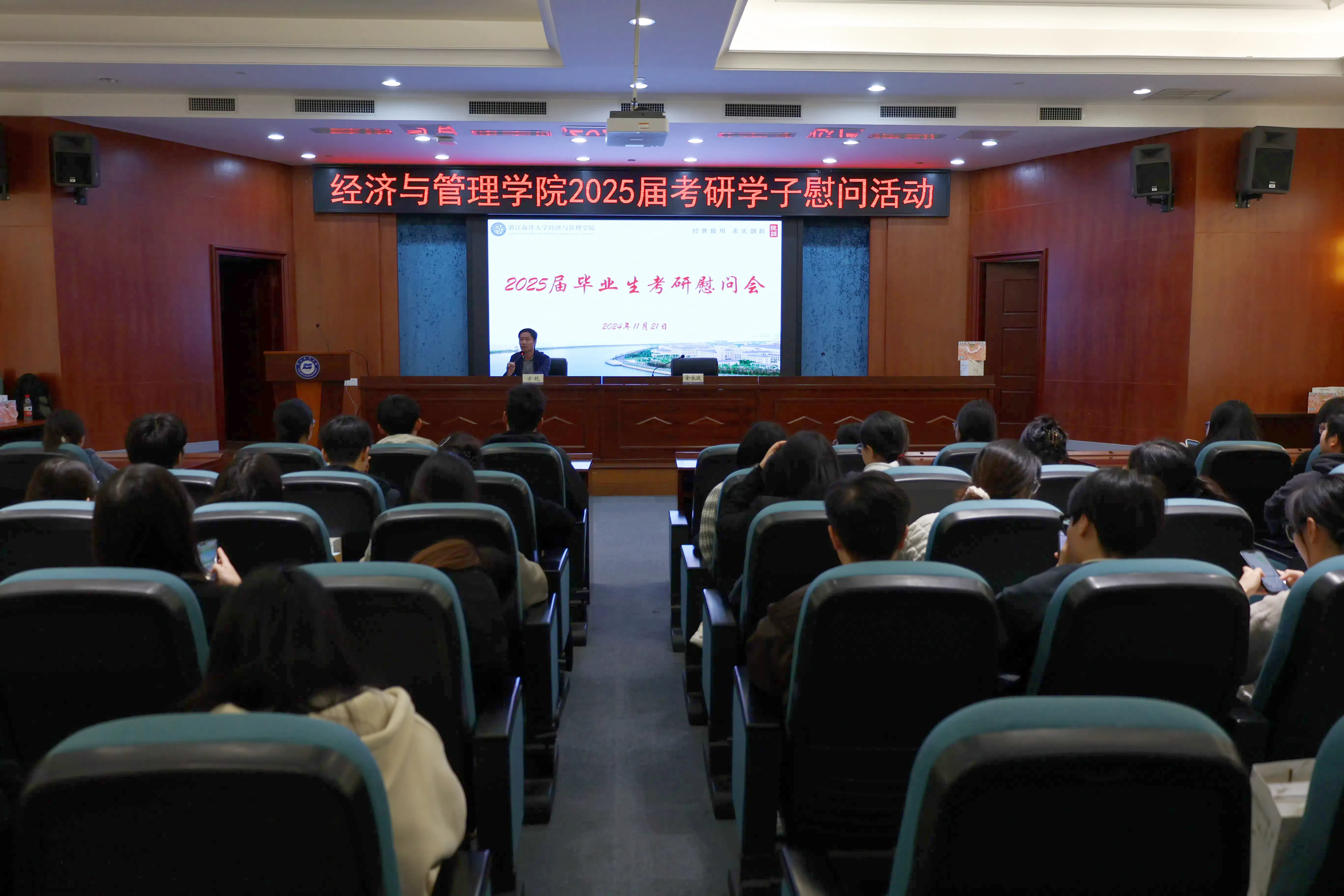 在2025年全国硕士研究生招生考试即将到来之际,为助力考研学子坚定目标、树立信心、增添动力,2024年11月21日下午,yl88858永利集团于新城校区图书馆一楼报告厅举办2025届考研学子慰问活动。yl88858永利集团院长、党委副书记全永波,党委书记方锐,就业工作辅导员李金航以及学院2025届考研学子参加活动。活动由学院党委书记方锐主持。