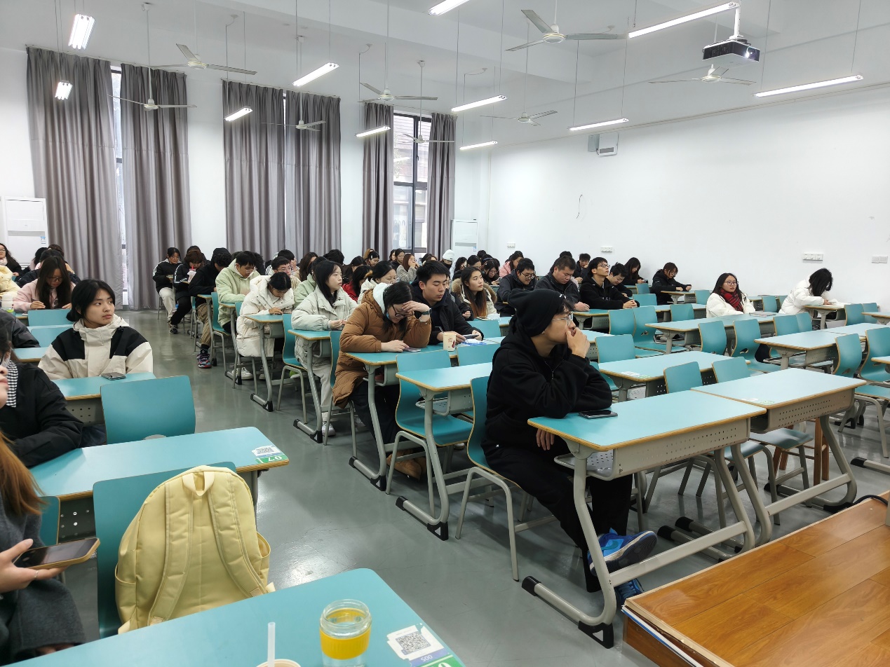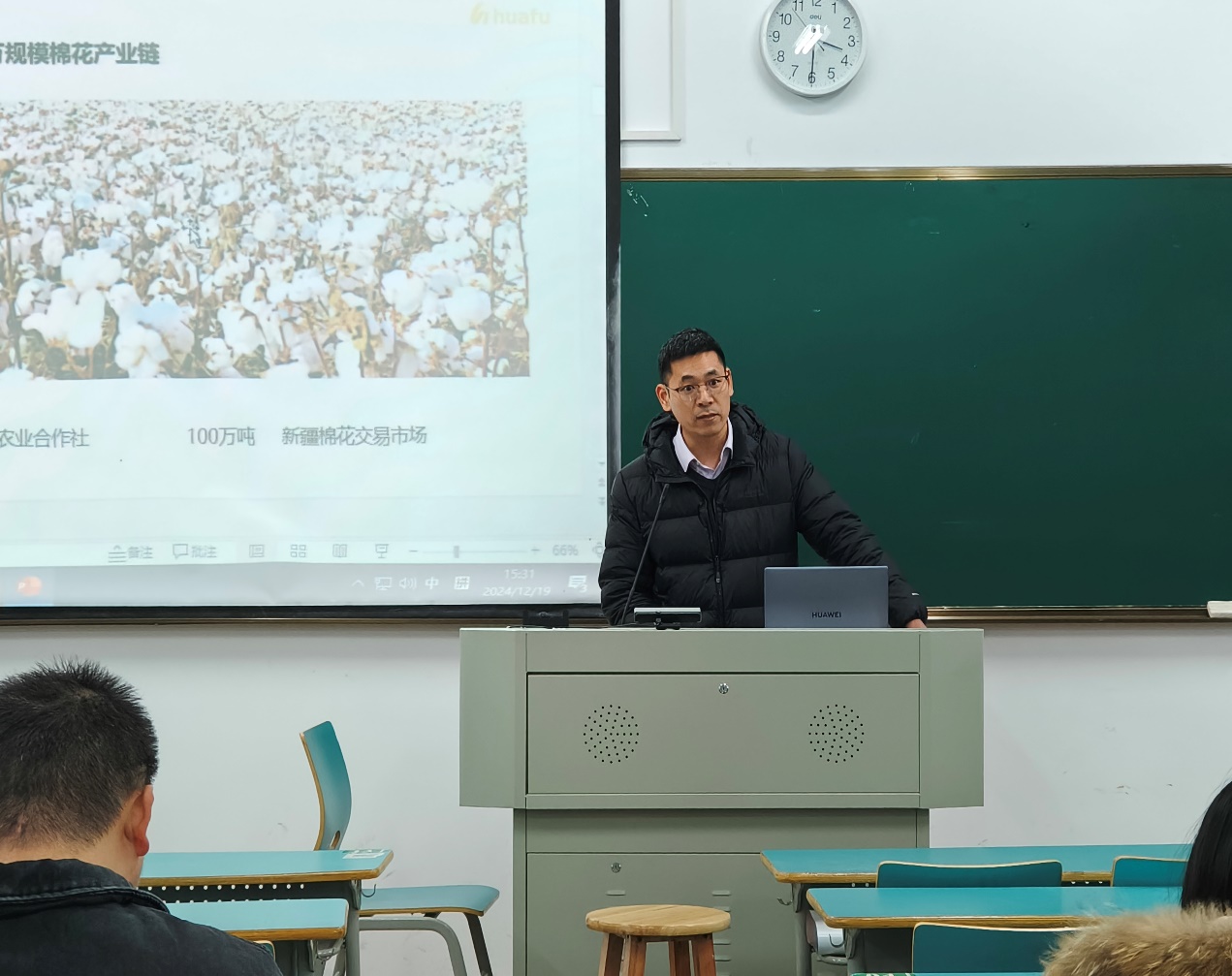 黄红兴经理先向同学们简要介绍了公司概况,涵盖主要业务、成立与上市时间等,强调该公司是全产业链企业,并阐释了产业链上下游的构成。随后,黄经理向同学们抛出了期货、股市等问题,了解了同学们对金融知识的掌握程度。为了使同学们能够更为直观地感受到该公司的工作环境,他借助图片展示了员工们的日常,主要为看盘、钻研技术、开展交易,“枯燥”但有满足与成就感。他还指出了交易员岗位的三大要求:对交易满怀热忱、能忍受孤寂、勤勉踏实。最后,黄经理向同学们展示了公司员工薪酬待遇与福利体系,强调公司为员工提供了具有竞争力的薪酬,同时还包括丰富的福利和职业发展机会,如定期培训、晋升空间以及健康保障等,鼓励同学们在今后的职业生涯中追求个人成长与事业成功。