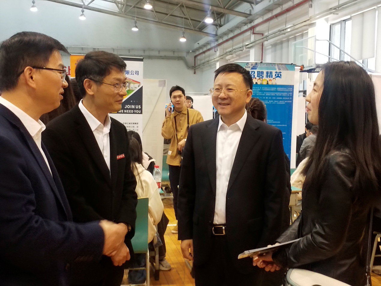 本次校园招聘会参会单位共计194家。方锐书记、陶芳芝副书记先后走访了宁波银行股份有限公司舟山分行、浙江华是科技股份有限公司、浙江中晟社区服务有限公司、青岛海信集团等多家企业展位,详细了解了企业生产经营、市场拓展、发展现状等情况,仔细询问企业招聘需求和选人标准。学院领导表示,学校、学院将努力完善“招生—培养—就业—校友”联动机制,不断健全人才培养与经济社会发展需要的适配机制,确保培养出更多适应市场需求的毕业生,推动校企生三方共同发展。