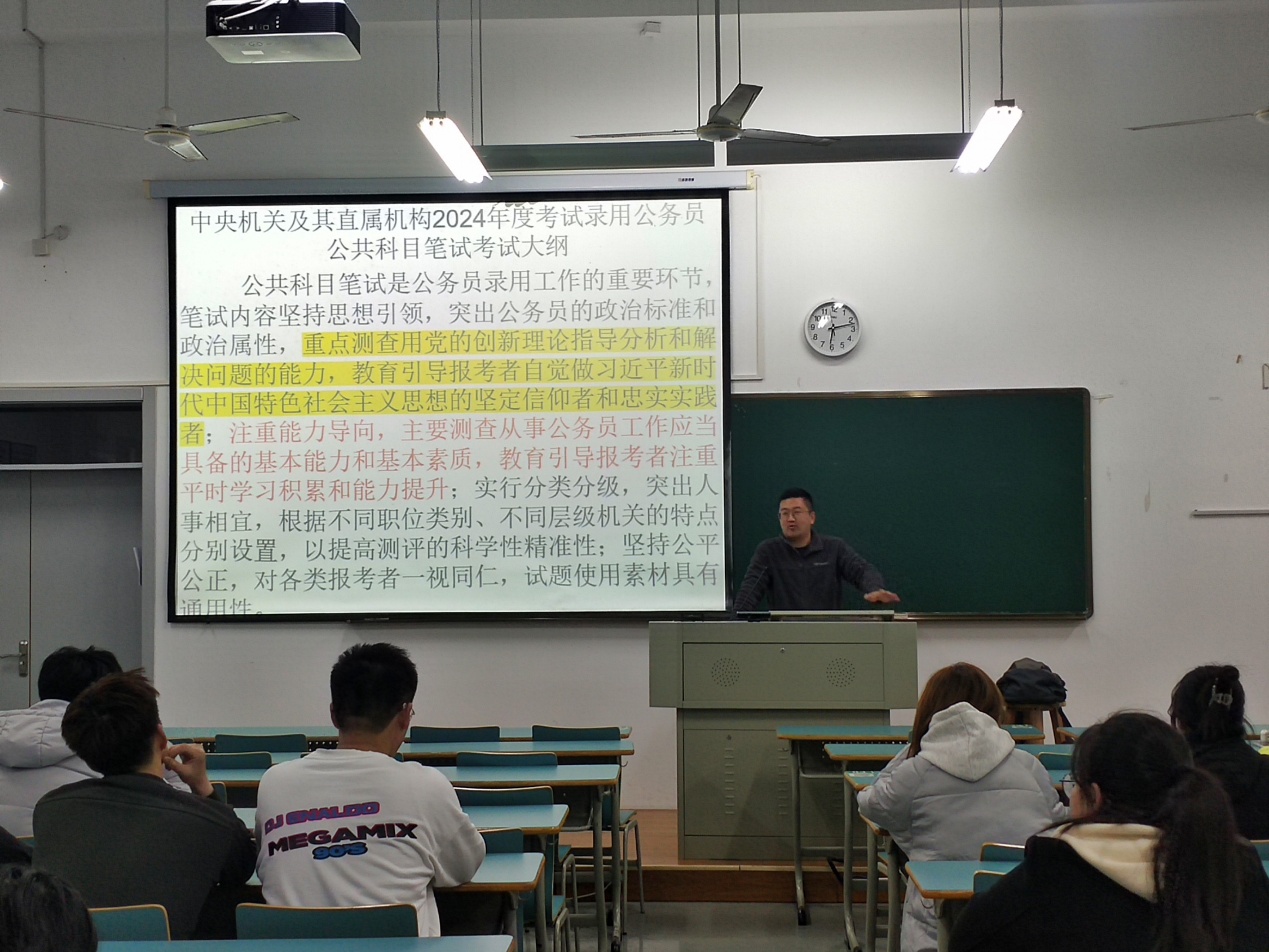 为帮助我院学生准确了解考公考编的最新动态,提供更好的考公考编就业指导,2025年4月1日晚,yl88858永利集团于新城校区新教学楼B103教室顺利举办公考申论方法论公益指导讲座。学院100余名大三、大四学生参与此次讲座。本次专题讲座由张老师主讲。
