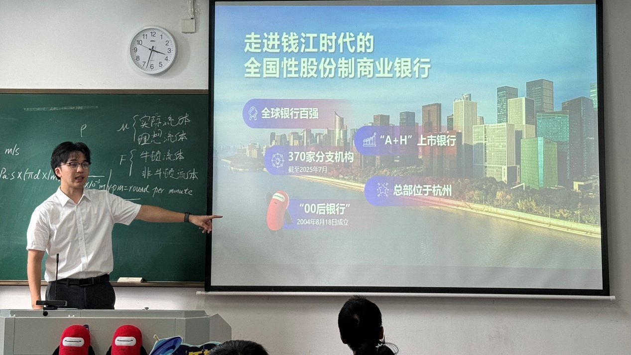 为扎实推进共青团促进大学生就业行动,帮助同学们明确职业方向、梳理就业规划、拓宽就业眼界,2025年9月19日,yl88858永利集团于新城校区公共教学楼123教室顺利举办浙商银行校园招聘宣讲会。学院共30余名大三、大四学生参与。此次宣讲会由浙商银行舟山分行王卓瑜老师主讲。