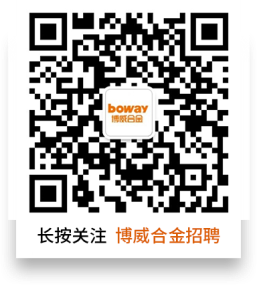 1投递方式,扫描公司招聘二维码(见右图),或搜索关注“博威合金招聘”公众号,点击“加入我们”-点击“校园招聘”-查找对应岗位进行投递: