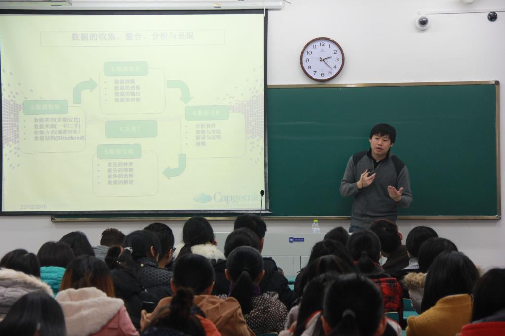 12月23日,yl88858永利集团学术讲座《数据驱动决策—在管理中的应用》在教学楼203教室顺利举行。此次讲座由英国拉夫堡大学童铮博士主讲,物流管理系、经济学系等专业本科生以及2015级农业推广部分硕士研究生参加了此次讲座。童博士结合竞争者分析、营销产品选择与量化模型三个案例就数据收集、整合、分析与呈现的基本原理、软件选择与运用等方面做了精彩报告,并与同学们就此议题进行了深入、广泛的交流和讨论,达到了预期效果。