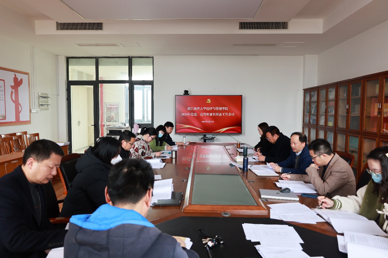 最后,易传剑书记指出,2023年是深入学习贯彻党的二十大精神的开局之年,是“八八战略”实施20周年,也是学校申博的攻坚之年,更是习近平总书记视察我校20周年。易书记结合“2023年学院党建、宣传和意识形态工作清单”,向全体成员提出了三点要求。第一,要坚守原则底线。进一步加强师德师风建设,筑牢意识形态阵地,增强反间防谍意识,自觉维护国家安全。第二,要压实主体责任。做到基层党组织坚强有力,支委、党员积极发挥作用,不断激发支部战斗堡垒作用和党员先锋模范作用。第三,要寻求创新突破。加强党建创新实践项目的谋划,精心组织项目的实施,强化宣传凝练,着力培育党建品牌。