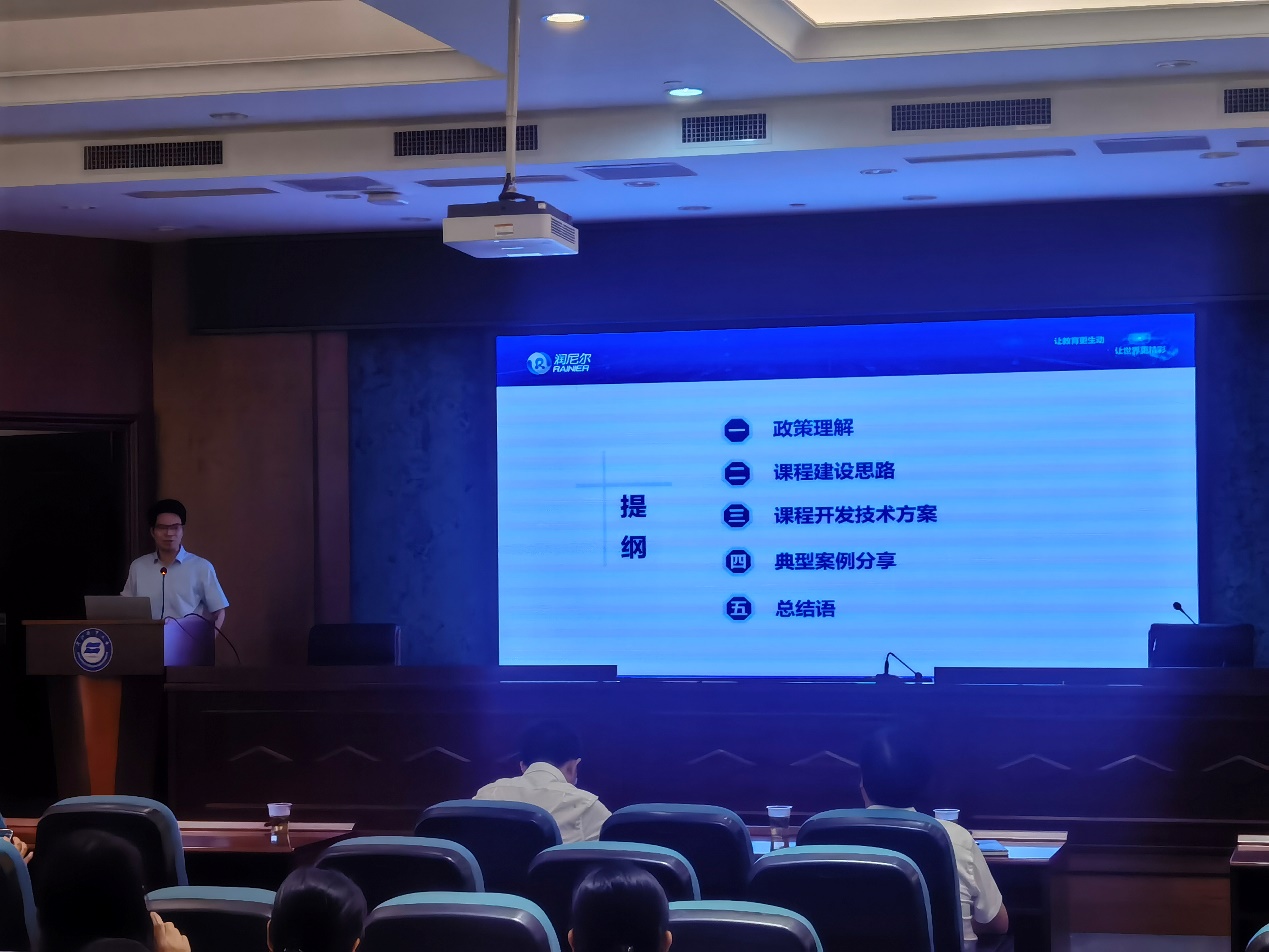 为深入学习贯彻《加快推进教育现代化实施方案》《虚拟现实与行业应用融合发展行动计划(2022—2026年)》等文件精神,持续推进信息技术与实验教学深度融合,加强实验教学优质资源建设与应用,进一步提升实验教学质量和实践育人水平,2023年6月29日下午,yl88858永利集团于新城校区图书馆一楼报告厅召开“虚拟仿真实验教学一流课程建设与实践”专题报告会。会议邀请北京润尼尔科技股份有限公司总裁、虚拟仿真实验教学创新联盟副秘书长陈美松主讲,会议由yl88858永利集团副院长崔旺来主持,学院全体教师参加了本次报告会。
