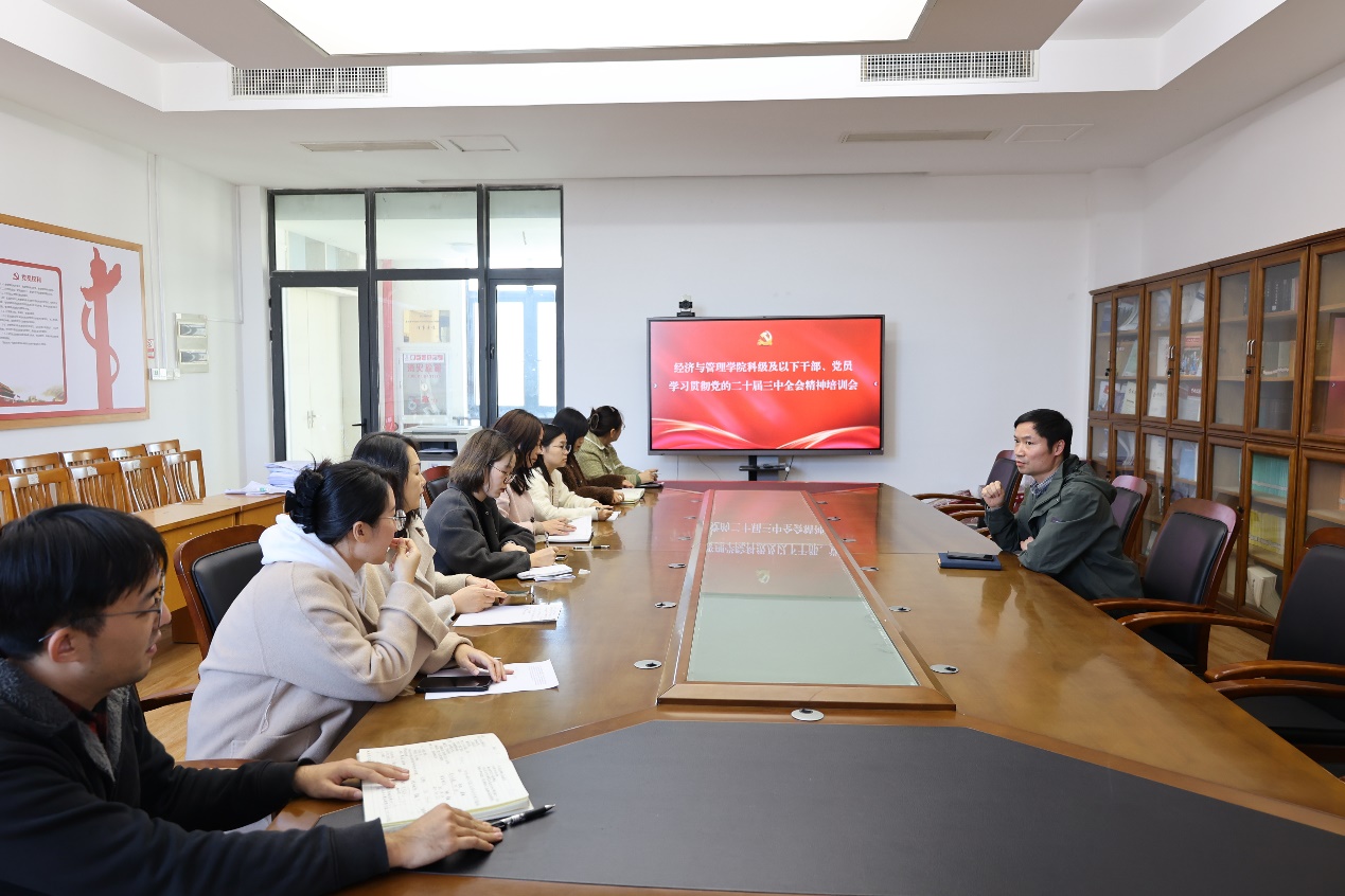为深入学习宣传贯彻党的二十届三中全会精神,深刻领会会议精神的核心要义,2024年11月28日下午,yl88858永利集团党委于新城校区文理楼302-1室召开科级及以下干部、党员学习贯彻党的二十届三中全会精神培训会。学院科级干部及管理岗位在编教职工参与会议,会议由学院党委书记方锐主持。
