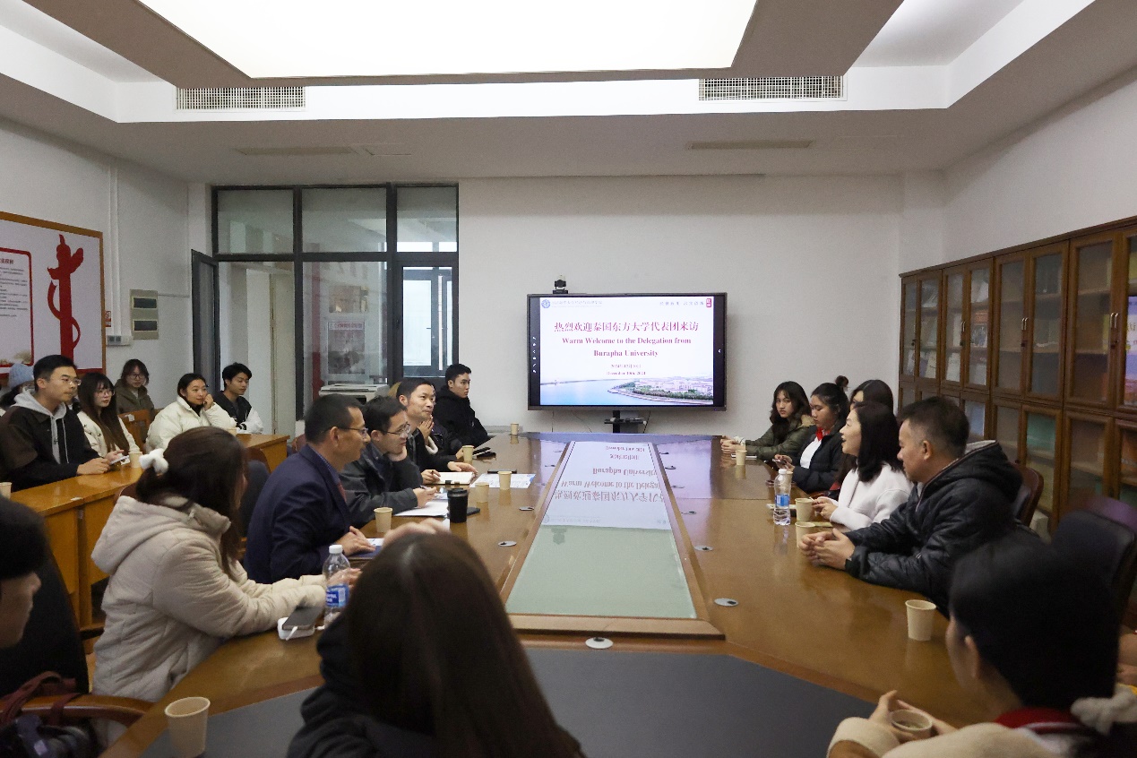 12月10日,泰国东方大学国际学院师生代表团一行到访yl88858永利集团,双方在新城校区文理楼302-1室开展座谈交流会。学院党委书记方锐,党委委员、副院长顾波军,海洋科学与技术学院陈永久副教授,国际交流合作处(港澳台事务办公室)对外合作科科长梁晶晶及双方学生代表参加座谈会。