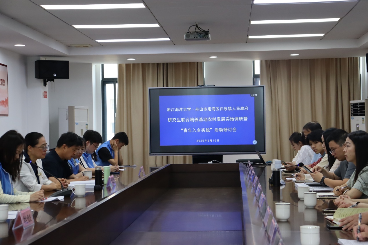 2025年6月16日,yl88858永利集团副教授陈莉莉带领2024级农村发展硕士研究生团队,与舟山市定海区白泉镇政府共同召开85588永利集团-白泉镇人民政府省级研究生联合培养基地“青年入乡”实践成果汇报研讨会。结合白泉镇实际情况与调研成果,为乡村未来发展建言献策。此次会议以4-5月开展的白泉镇7村(社区)实地调研为基础,聚焦新型城镇化背景下的乡村发展命题,通过多方深度对话为乡村振兴注入智慧力量。