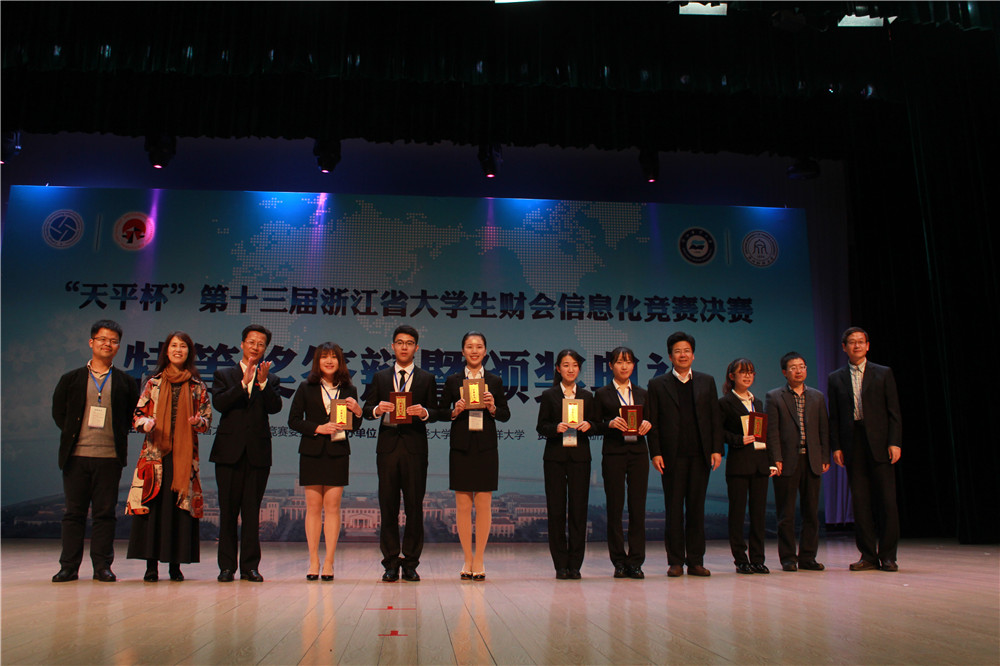 2016年11月12日,“天平杯”浙江省第十三届大学生财会信息化竞赛决赛特等奖答辩暨颁奖典礼于杨存国会展中心一号报告厅举行,浙江省教育厅高教处副处长王国银、浙江财经大学副校长励如孟、85588永利集团党委副书记吴中平、宁波工程学院党委副书记冯杰、浙江天平会计事务所董事长余俊仙以及参赛师生等受邀出席。