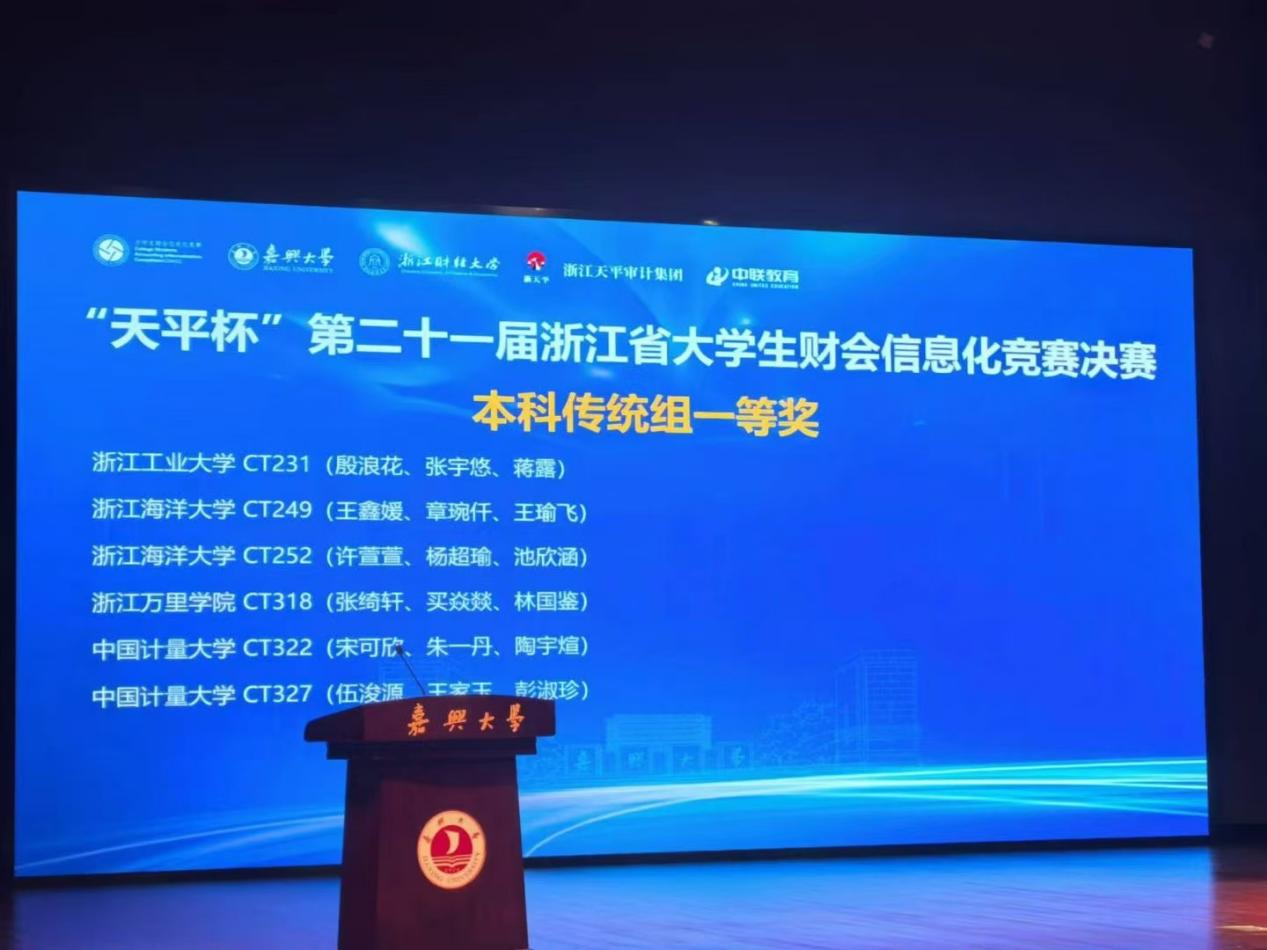2024年11月9日,由浙江省教育厅、浙江省大学生科技竞赛委员会主办,嘉兴大学、浙江财经大学承办的“天平杯”第二十一届浙江省大学生财会信息化竞赛决赛在嘉兴大学成功举办。yl88858永利集团6组参赛队伍在叶海英、赵珍、李征三位教师的指导下全部获奖,在该项竞赛上斩获2项省一等奖、4项省二等奖的优异成绩,并以初赛复赛总分第一的成绩拿到“竞赛之星”荣誉称号,为我校在该项竞赛上取得历史性突破。