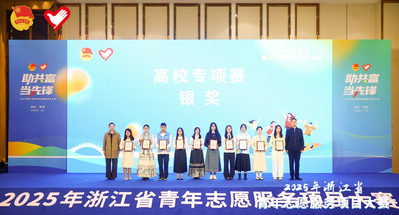 11月16日,由共青团浙江省委主办,浙江省青年志愿者协会、共青团绍兴市委、浙江省团校承办的2025年浙江省青年志愿服务项目大赛在绍兴柯桥落幕。本次大赛涉及乡村振兴、为老服务、阳光助残、关爱少年儿童、环境保护等13个领域。大赛分为主体赛、高校专项赛和“浙哲共富行”赛道等三个类别,设置金奖、银奖、铜奖等三个等级奖项。由我校推荐的环境保护类项目《“减塑英雄传——海岛少年环保教育”志愿服务项目》荣获高校专项赛银奖。