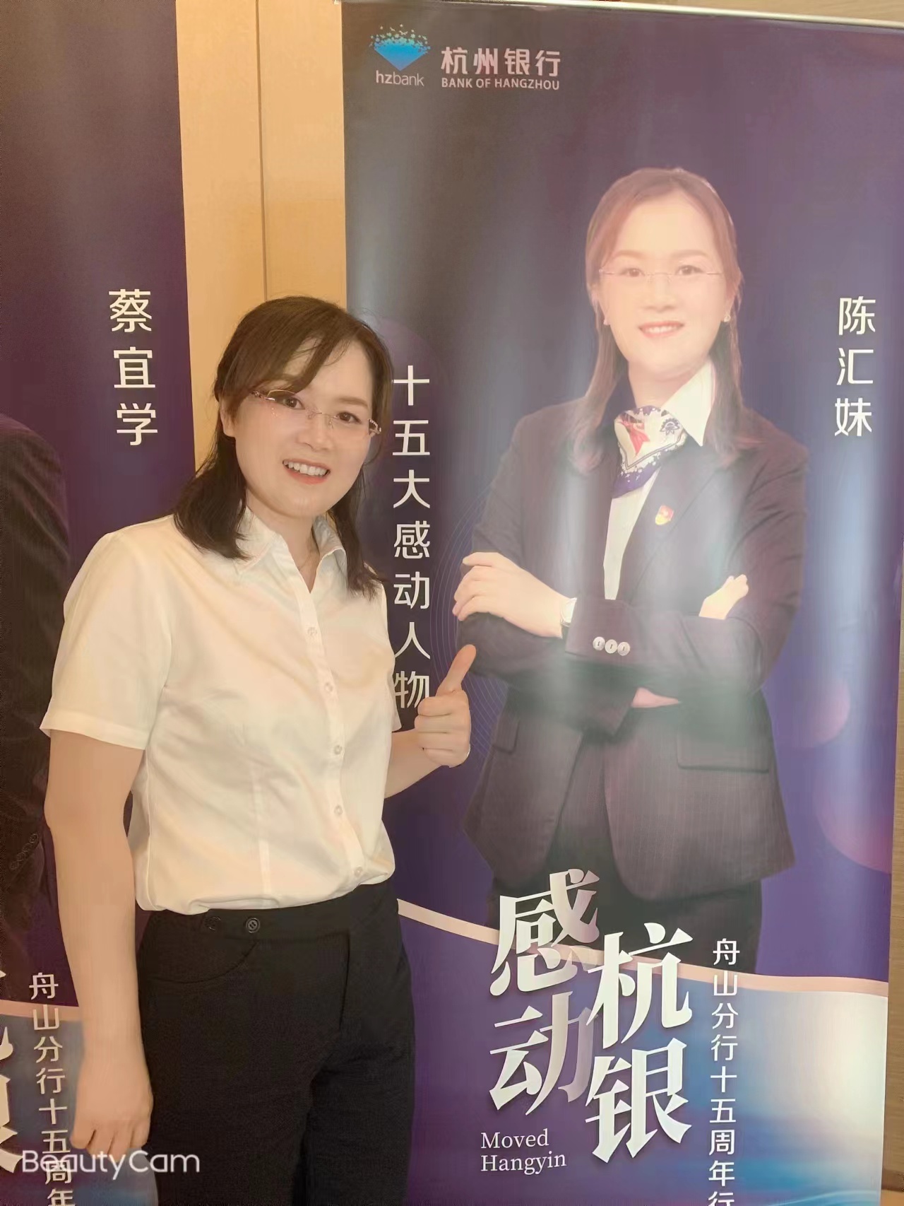 大学期间我担任了学院学生会干部,曾获校优秀毕业生。毕业时候有许多工作选择,当时机缘巧合留在舟山,现在这么多年过去了,我很庆幸当初选择留在了舟山。我和我先生是浙海大同学,大学恋爱,毕业面临工作选择,最终因为爱情我俩选择一起留在了舟山,没有回到我们各自的家乡-温州、嘉兴。