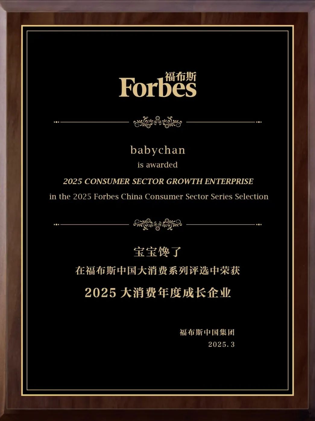 福布斯中国大消费榜作为全球商业领域的权威标杆,以严谨的评选流程和全面的评估体系著称,影响力如同影视圈的“奥斯卡”。2025年福布斯中国大消费榜单评选聚焦在“稳大盘·真需求·谋创新”,重点关注企业在复杂经济环境下的战略定力与创新能力。“宝宝馋了”本年度成功入选,不仅是对企业品牌综合实力的国际化认可,也体现了“宝宝馋了”在消费升级浪潮中的母婴零辅食行业引领地位。