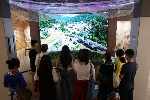 在新建村,各民族师生还循着总书记的考察足迹,前往火车广场、新建文化大礼堂、群众艺术创作中心、欢喜书屋等地,聆听当地发展故事、了解生态保护成果、感受乡村文化魅力,沉浸式体验“绿水青山就是金山银山”的海岛实践,进一步理解了习近平生态文明思想的真理力量和实践伟力。“活动让我实地感悟到‘两山’理念和‘双碳’目标在新建村的生动实践,更坚定了我用青春守护绿水青山、投身生态文明建设的信心。”学院塔塔尔族学生葛子涵说道。