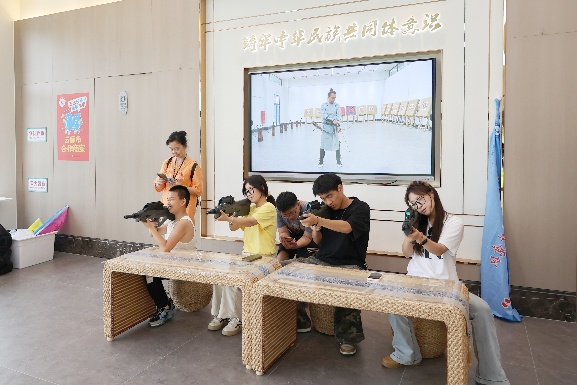 在同心射箭馆内,大家先后体验了射击、射箭等竞技项目,不同民族的朋友并肩协作、互相鼓励,不仅提升了运动技巧,也进一步加深了彼此间的情感联结。“活动让各民族师生像石榴籽一样紧紧抱在一起,在团结与协作中共同描绘舟山美好明天。” 学院维吾尔族学生祖丽皮耶·艾尔肯说道。