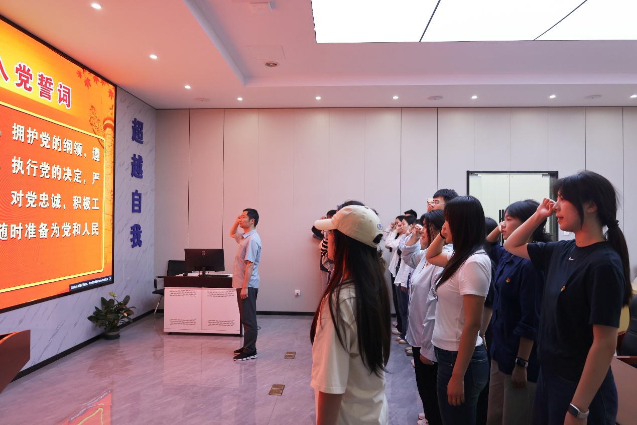 最后,方锐书记宣读了2025年上半年学院新发展的29名学生党员名单,并为全体预备党员佩戴党员徽章。方锐书记还带领全体党员进行了庄严的入党宣誓,激励大家牢记初心使命,坚定理想信念,切实发挥党员的先锋模范作用。