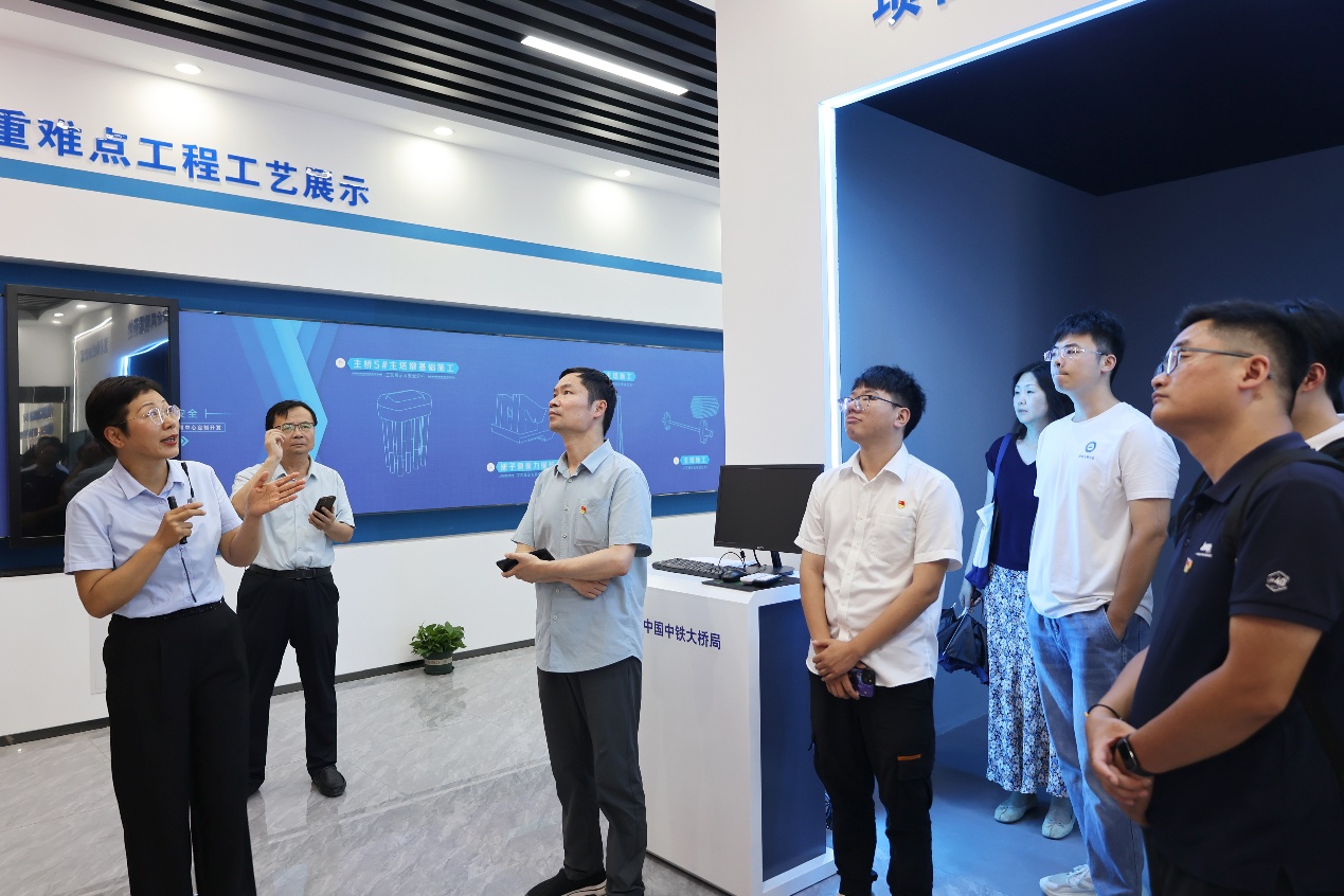 在桥文化展示馆内,刘春云为师生党员介绍了中国跨海大桥所取得的辉煌成就,强调了中铁大桥局积极响应国家“一带一路”倡议,努力开拓国际桥梁建筑市场的战略布局。随后,师生党员通过丰富多样的展示媒介,包括图文展板、实物模型以及多媒体互动演示,深入了解了西堠门公铁两用大桥的建设历程,学习了桥梁科技创新和管理经验的先进做法。刘春云还介绍了中铁大桥局独具特色的“桥头堡 党建”品牌工作体系和“1435”清廉甬舟公铁建设体系,展现了企业党建与项目建设深度融合的生动实践。